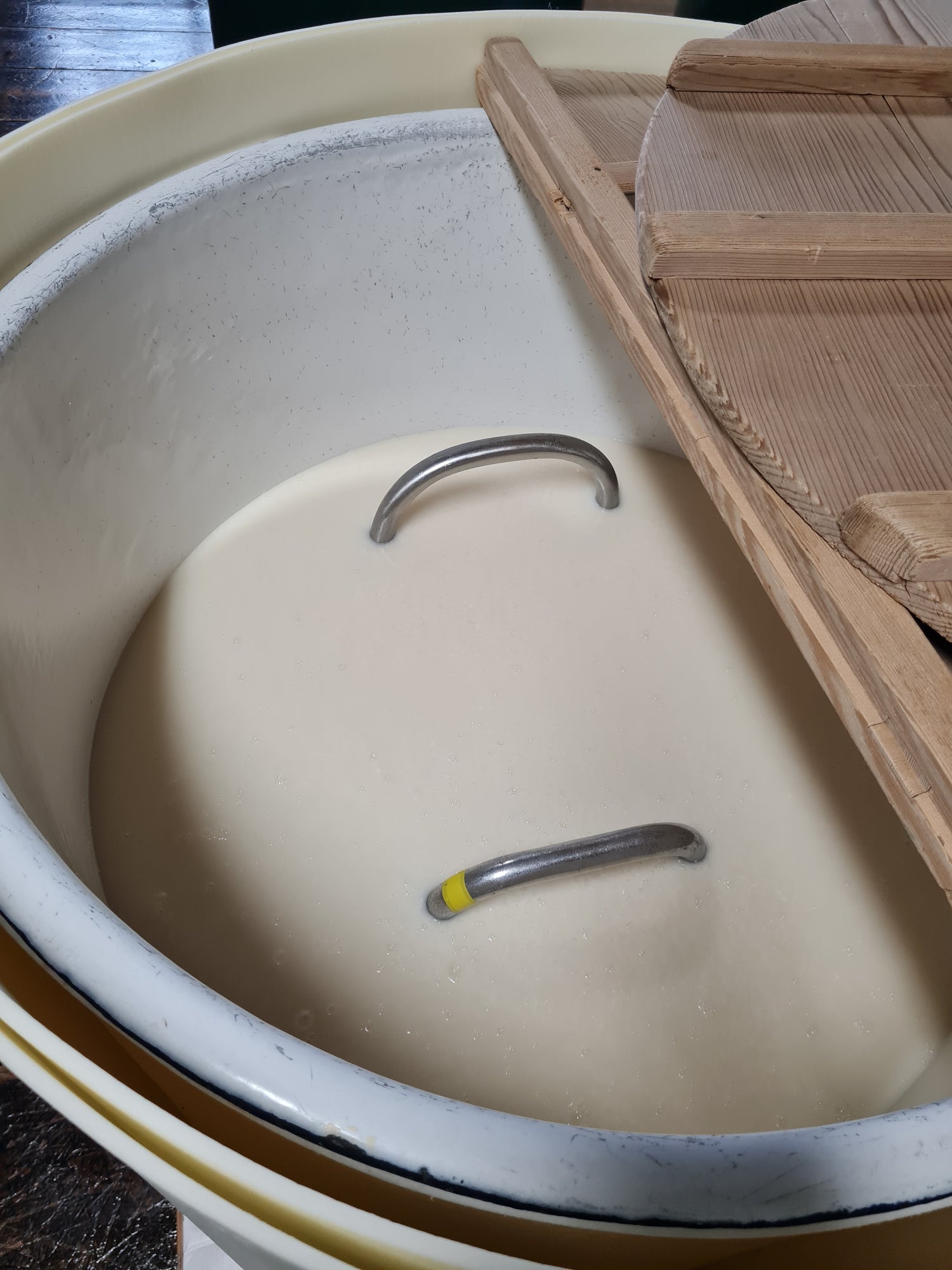 Egy kisebb tankba élesztőt, tejsavat, kojit és vizet töltenek. A tejsavas közeg segíti az élesztő gyarapodását, ugyanakkor megvédi azt a potenciálisan ártalmas baktériumoktól és mikroorganizmusoktól. A mixhez később gőzölt rizst adnak.