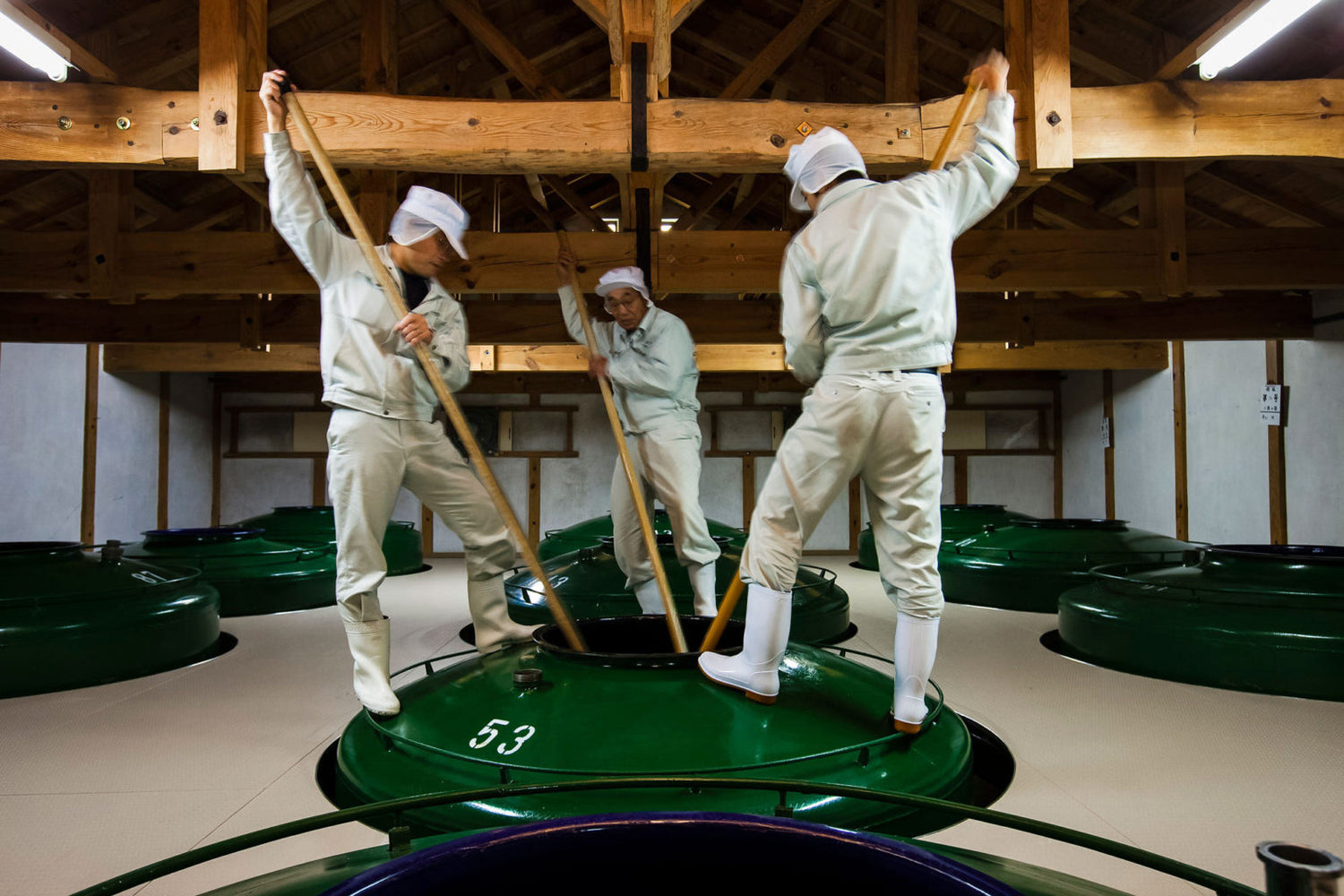 Az Akita főzde ikonikus junmai szakéján olvasható "Koshiki Junzukuri" ('ősi módszer') megragadja a főzde egész filozófiáját. Jóllehet, a technikai innovációk e tradicionális mesterséget is elérték, a főzdében mégis büszkék arra, hogy több, mint száz éves eszközeik - mint például a gőzölő kama - a mai napig részt vesznek a munkafolymatban.